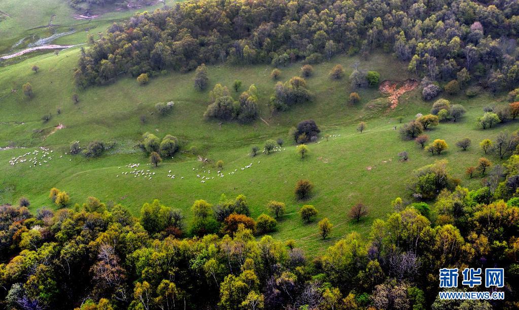 5月4日拍摄的陇县关山草原旅游风景区一角(无人机照片)。 新华社记者 陶明 摄