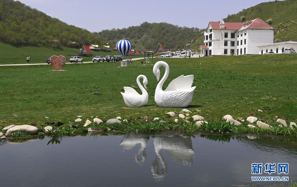 5月4日,游人在陇县关山草原旅游风景区游玩。 新华社记者 陶明 摄