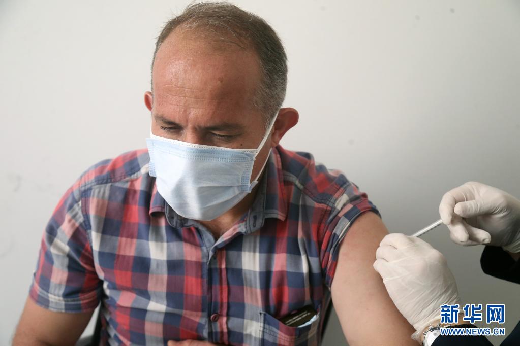 5月3日,一名男子在土耳其安卡拉接种新冠疫苗。