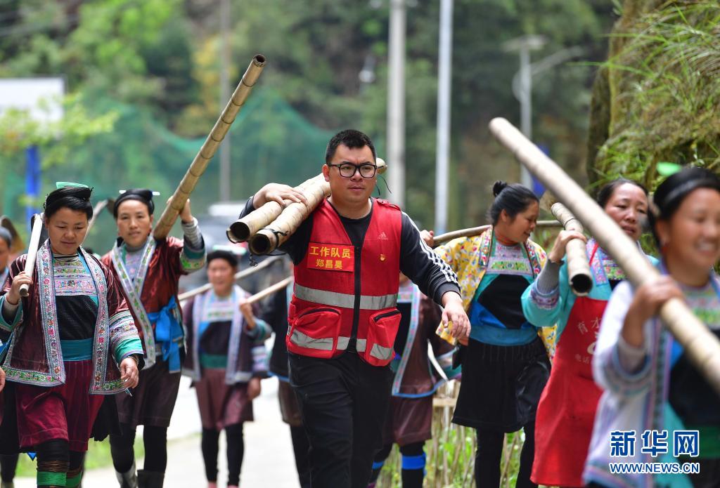 在乌英苗寨,郑昌昊和妇女们去劳动(4月20日摄)。