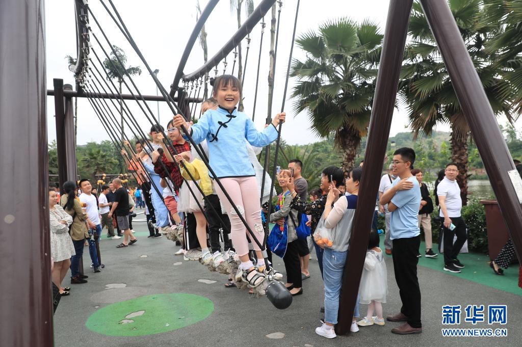 “五一”假期,众多家长带着孩子来到重庆市璧山区枫香湖儿童公园,体验园区种类多样的休闲运动项目,愉快度假。