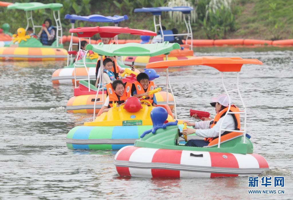 “五一”假期,众多家长带着孩子来到重庆市璧山区枫香湖儿童公园,体验园区种类多样的休闲运动项目,愉快度假。