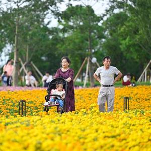 5月3日,游人在广西柳州市柳东新区滨江生态公园里游玩。新华社发(黎寒池 摄)