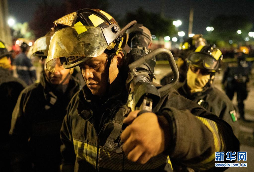 5月3日晚,消防员在墨西哥首都墨西哥城的坍塌现场工作。