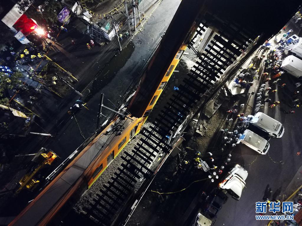 这是5月4日凌晨在墨西哥首都墨西哥城拍摄的坍塌现场(无人机照片)。