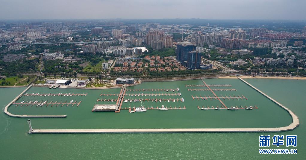这是4月30日拍摄的海口国家帆船基地公共码头,首届消博会游艇展将在这里举行(无人机照片)。
