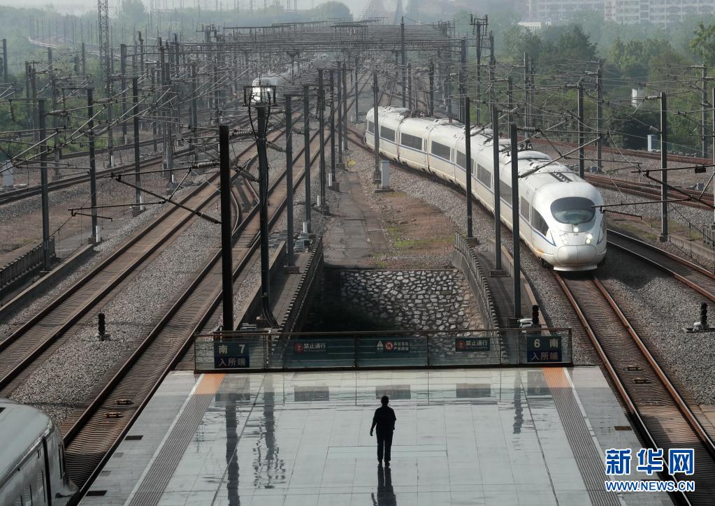 高铁动车组驶入武汉火车站(5月5日摄)。