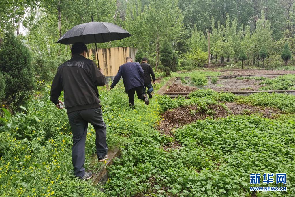 督察人员察看河口村的生活污水设施运行情况(4月24日摄)。