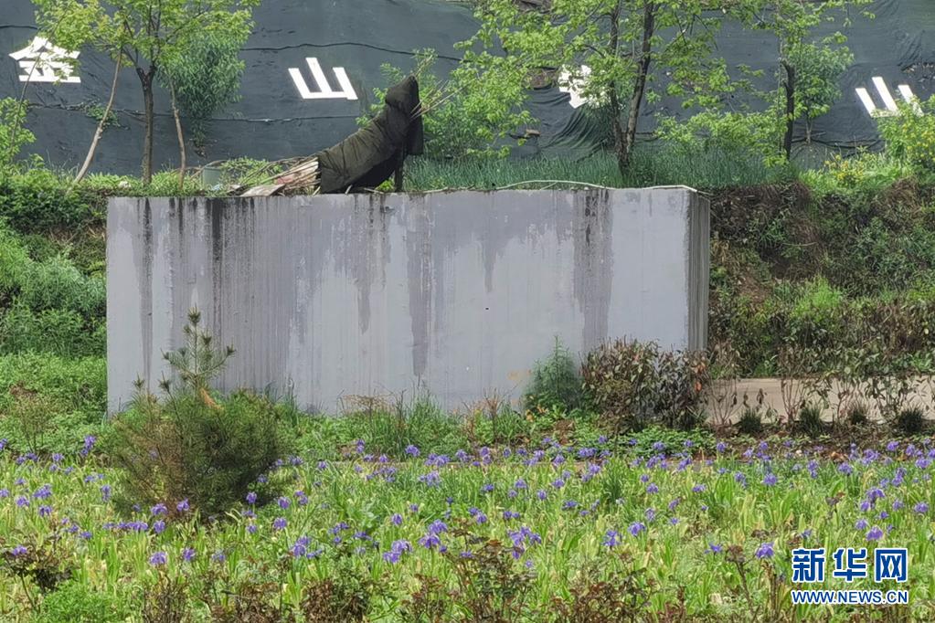 种上了没有净化功效的鲜花的霍村人工湿地(生态植物塘)和塔式生态滤池(4月25日摄)。