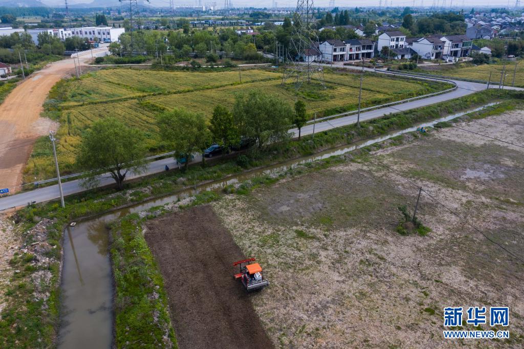 在东林镇保永村,种植户操作旋耕机耕地,准备播种水稻(5月7日摄,无人机照片)。