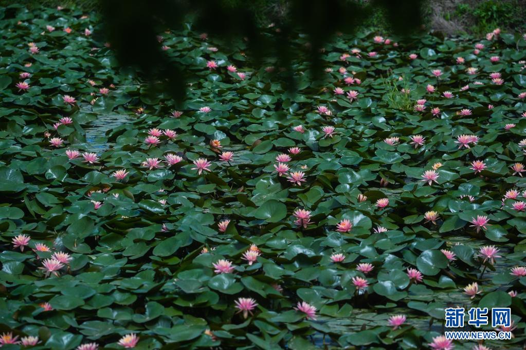 在东林镇东方村,水田里种植的睡莲盛开(5月7日摄)。