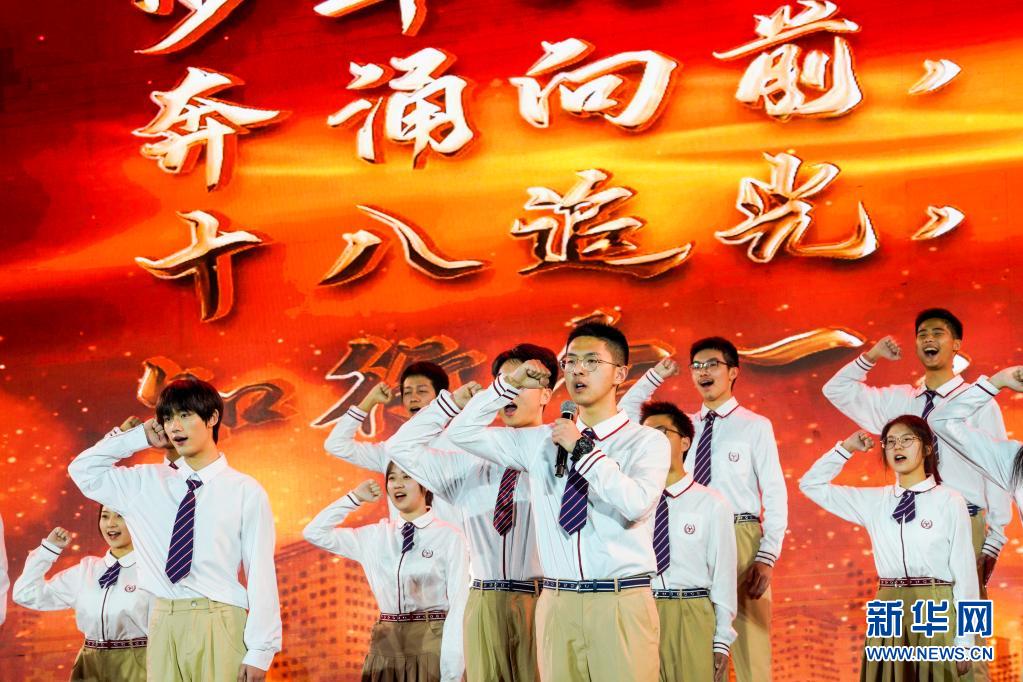 5月6日,在重庆市育才中学校2021“百年壮志行·青春恰时来”主题活动上,高三学生代表领读十八岁成人礼誓词。