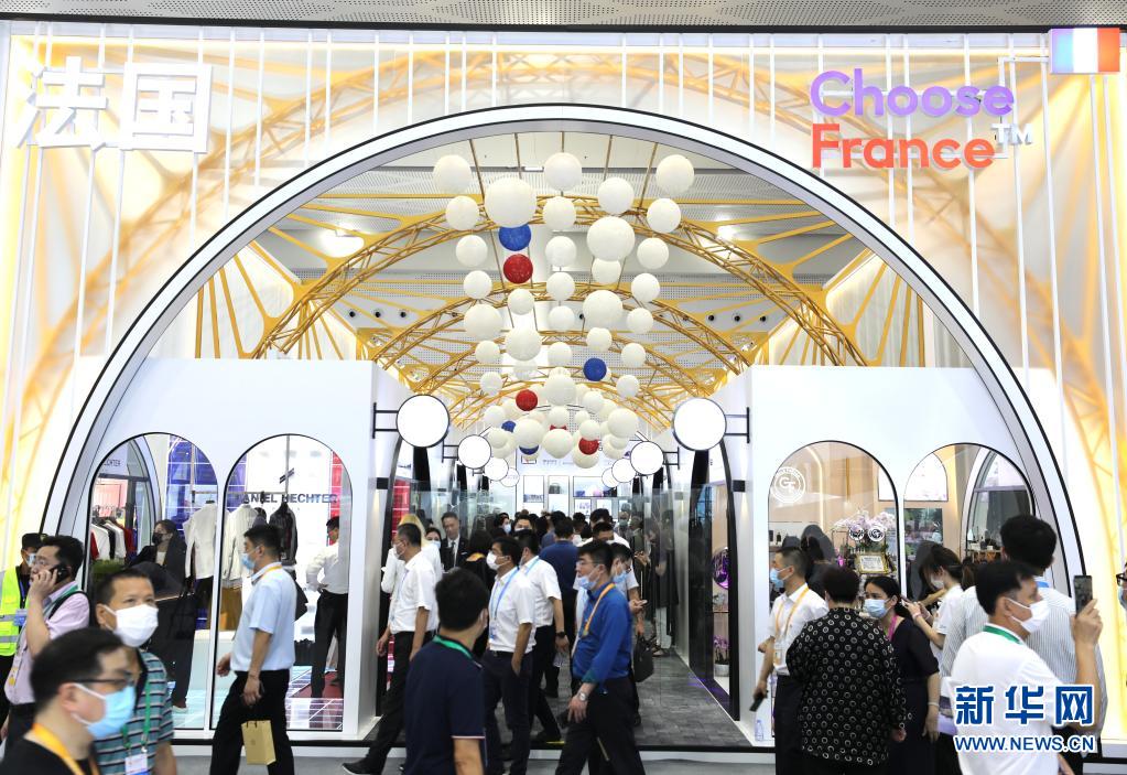 5月7日,人们走过海南国际会议展览中心时尚生活展区法国馆。