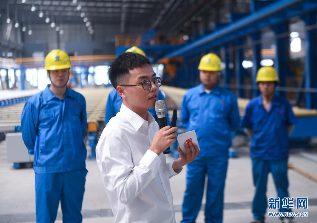 5月7日,来自“织里知礼·青年宣讲团”的党员志愿者走进栋梁新材有限公司的车间,在企业员工休息时给他们宣讲红色革命故事。