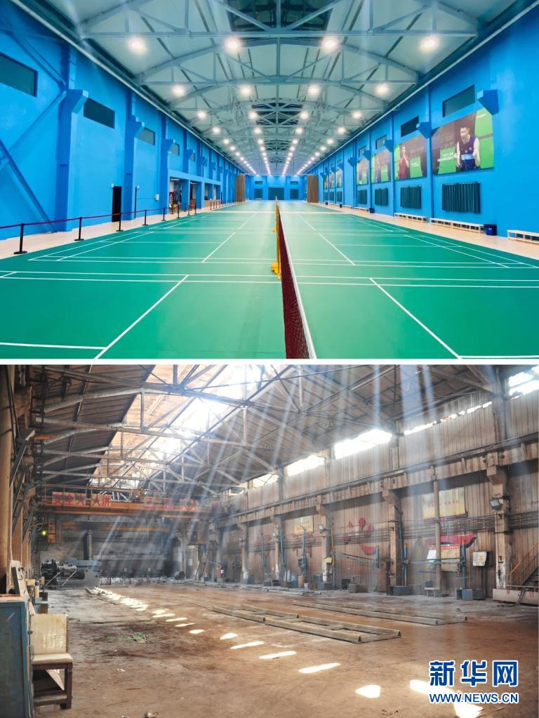 这是一张拼版照片:改造后(上图)和改造前(下图)的河南郑州芝麻街1958双创园内一处厂房(资料照片)。