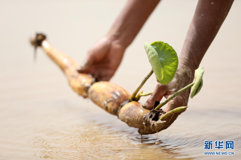 5月7日,河北省邢台市隆尧县东良镇泽畔村的农民在种植莲藕。