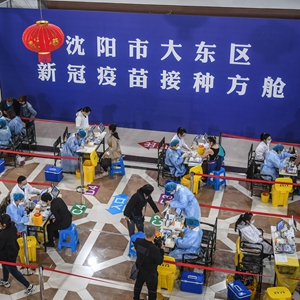 5月7日,市民在沈阳市大东区新冠疫苗接种方舱一楼接种区接种疫苗。
