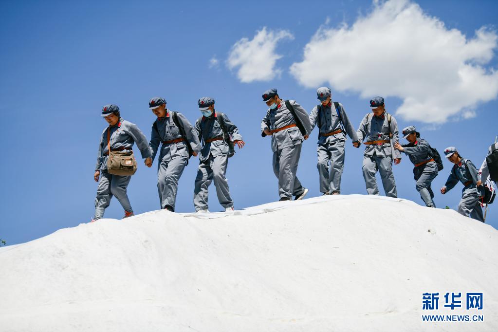 5月7日,在天津市西青区辛口镇第六埠村,天津聋人学校的师生参加“重走长征路”红色教育活动。当日,来自天津聋人学校的约150名中学生来到天津市西青区辛口镇第六埠村,开展“重走长征路”红色教育活动。新华社发(孙凡越摄)