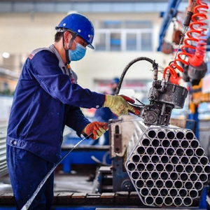5月7日,工人在由天津转移而来的唐山正元管业有限公司车间内对管材进行保护处理。