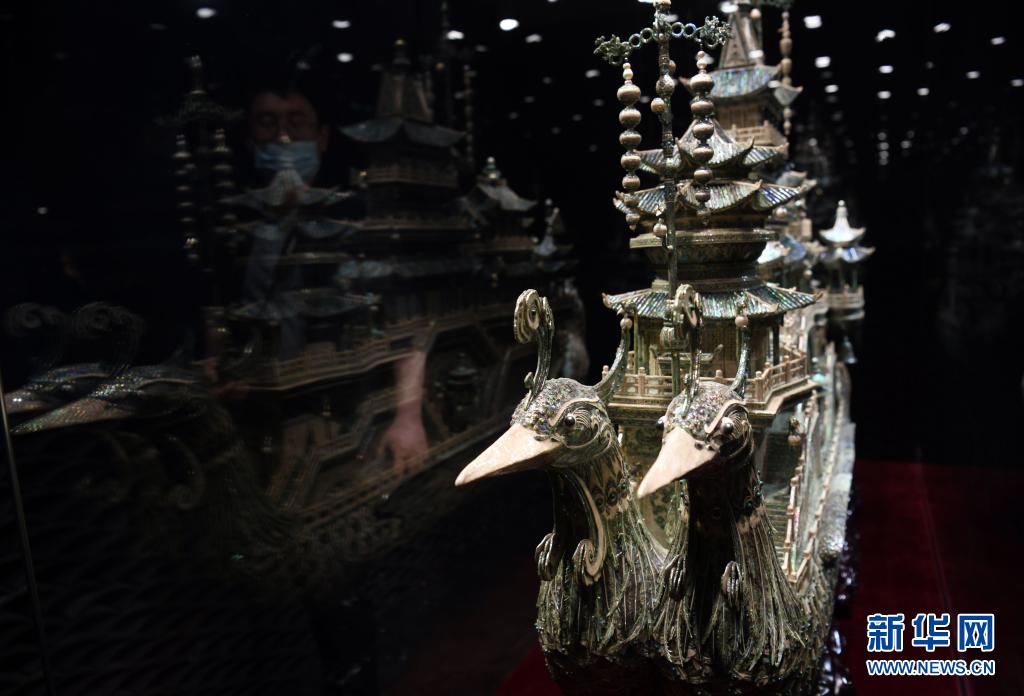 这是5月7日在北京恭王府博物馆拍摄的贝雕作品《凤船》。新华社记者 金良快 摄