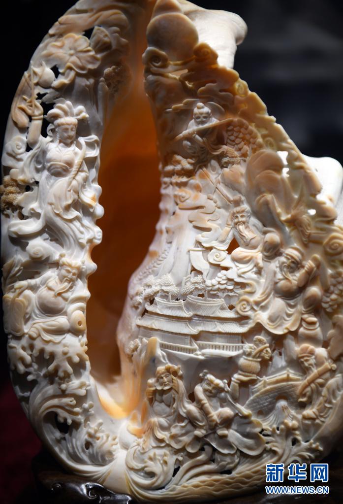 这是5月7日在北京恭王府博物馆拍摄的贝雕作品《八仙》。新华社记者 金良快 摄
