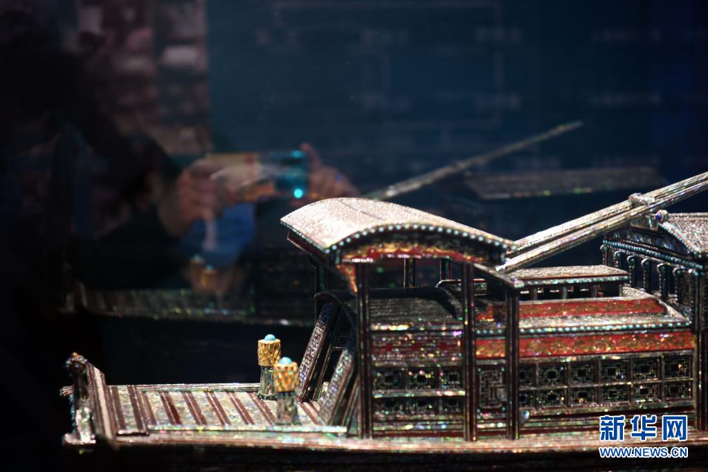 这是5月7日在北京恭王府博物馆拍摄的贝雕作品《弘扬红船精神》。新华社记者 金良快 摄
