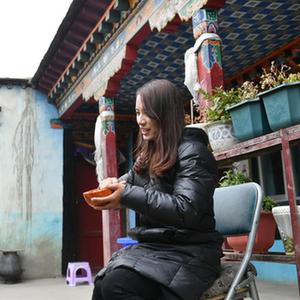 在位于拉萨的奶茶店,澳门姑娘邵颖怡(右)将刚做好的奶茶交给外卖送餐员(5月6日摄)。新华社记者 孙瑞博 摄