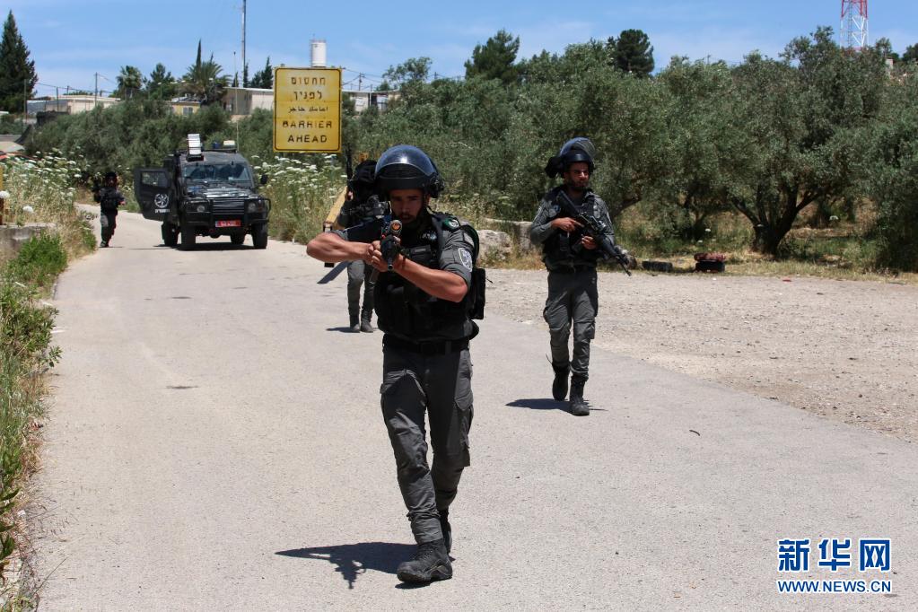 5月7日,以色列警察在约旦河西岸城市杰宁发生枪击事件的现场附近执勤。