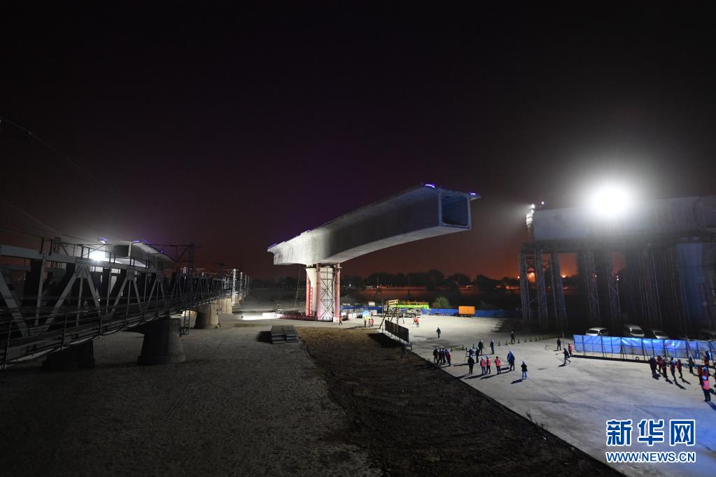 这是5月8日凌晨拍摄的北京丰台站改建工程跨京广铁路转体桥转体施工作业现场。