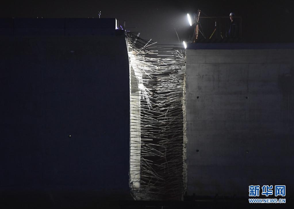 这是5月8日凌晨拍摄的北京丰台站改建工程跨京广铁路转体桥转体施工作业现场。