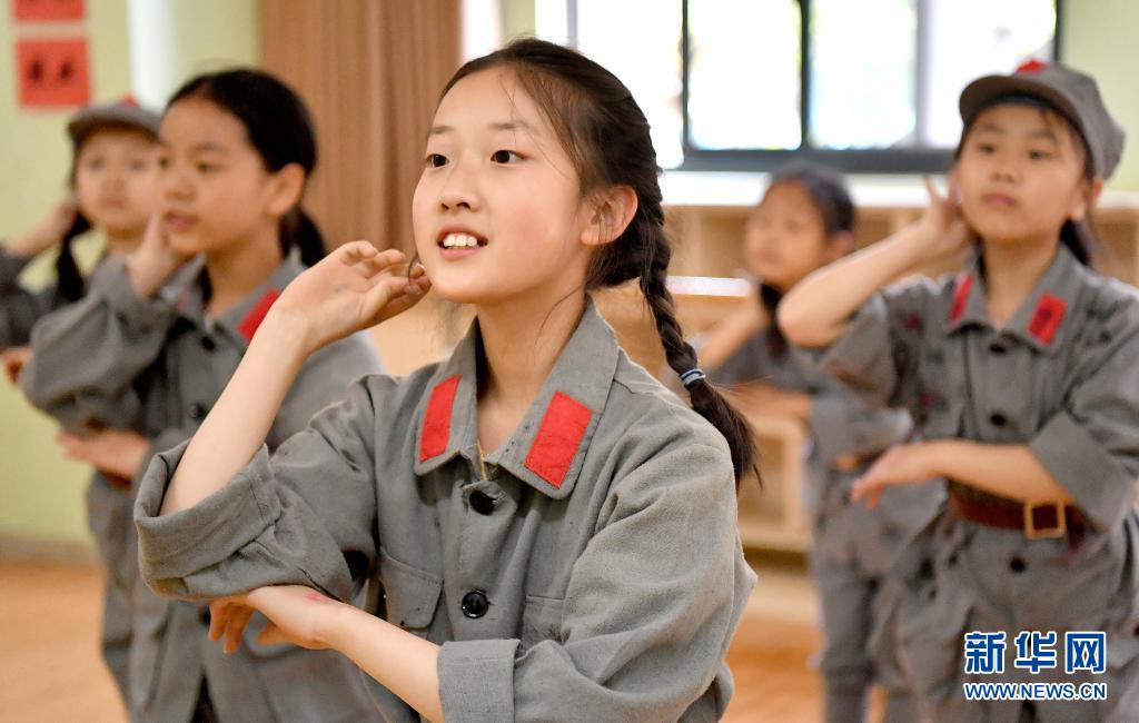 延安市新区第一小学舞蹈社团的学生在练习舞蹈(5月7日摄)。