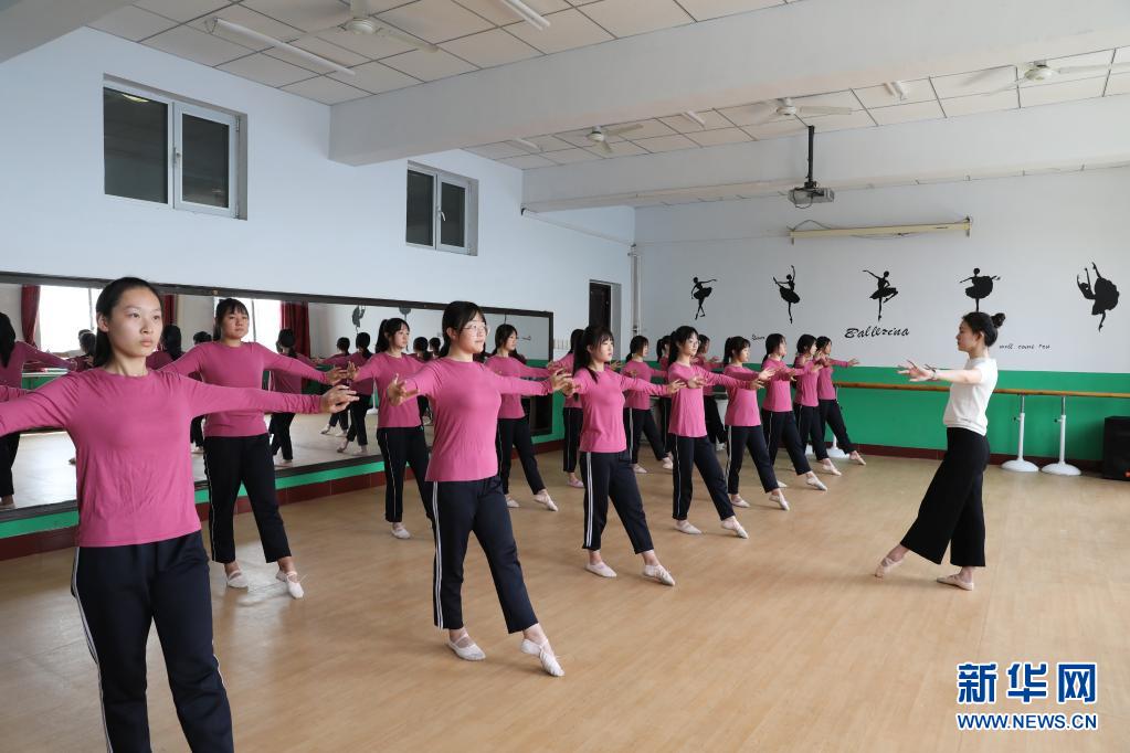5月8日,河间市职业教育中心教师指导学生练习舞蹈动作。