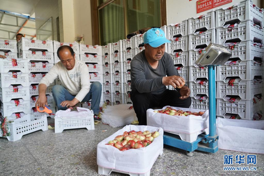 5月8日,大荔县范家镇南干村村民在对油蟠桃称重包装。