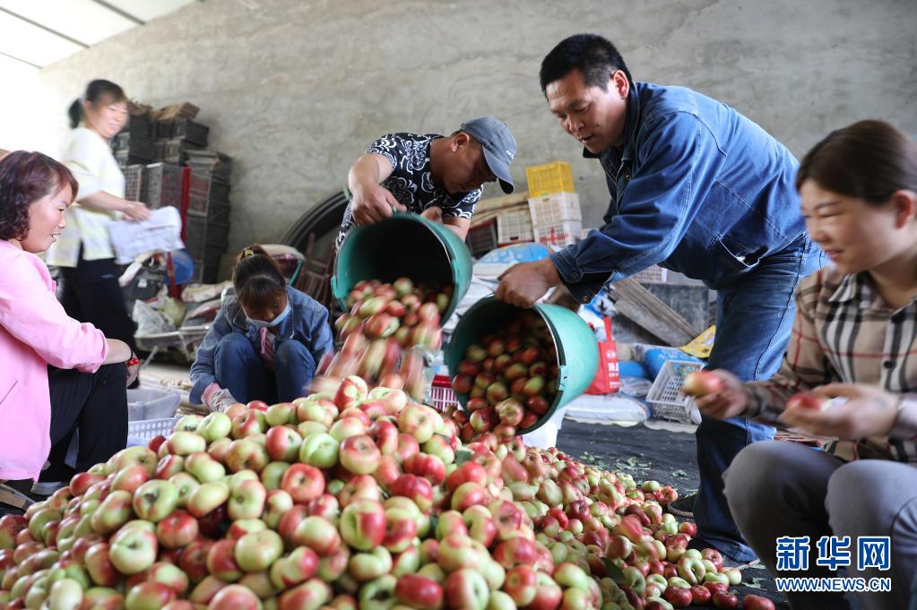 5月8日,大荔县范家镇南干村村民在分拣油蟠桃。