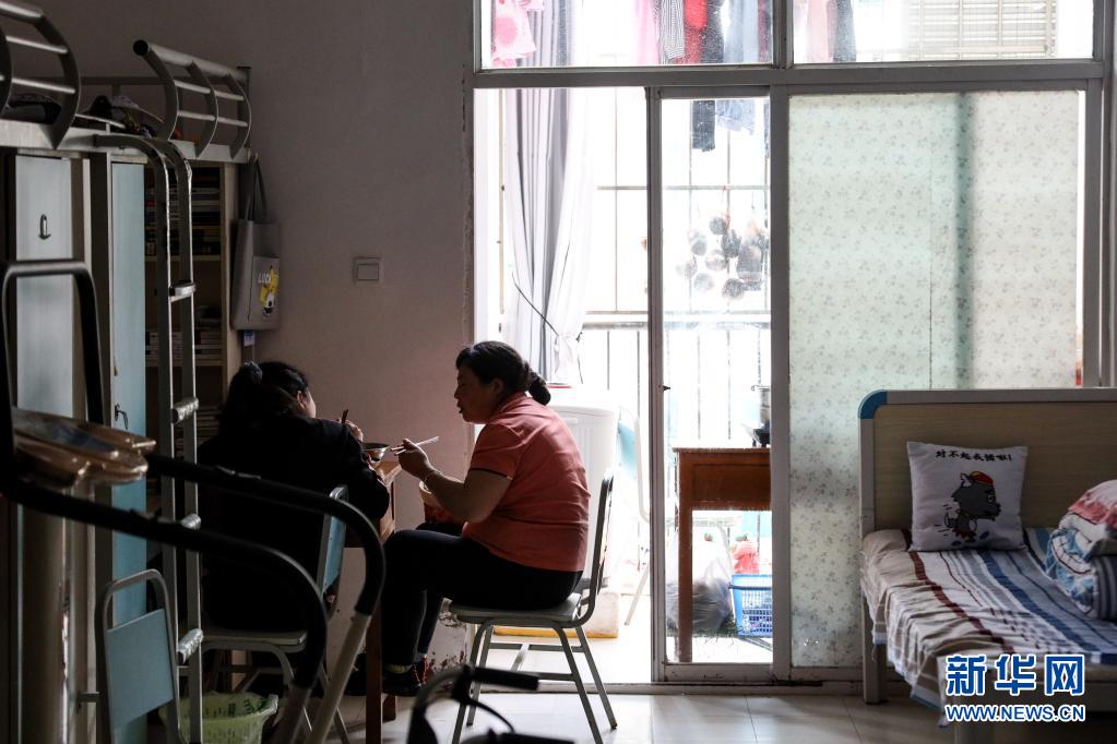 5月8日,母亲侯汝彩(右)和女儿马小婷在一起吃午饭。