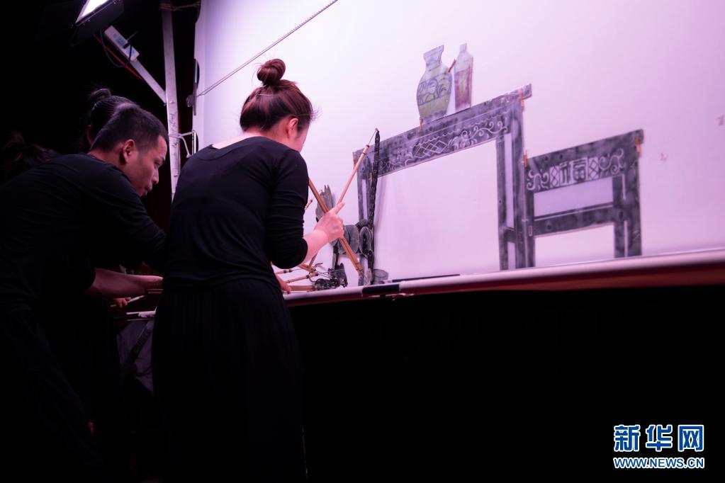 5月8日,皮影艺人在陕西省渭南市华州区少华山国际皮影博览园表演皮影戏。