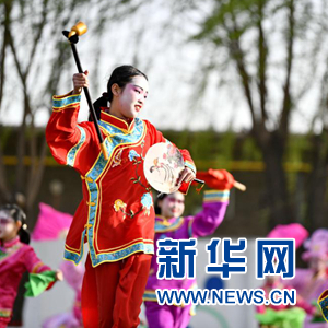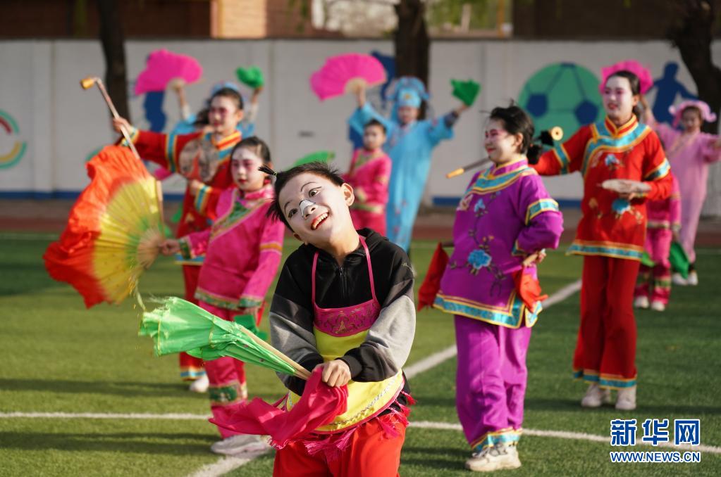 5月8日,河北省滦州市小闫营小学学生在排练地秧歌。新华社记者 牟宇 摄