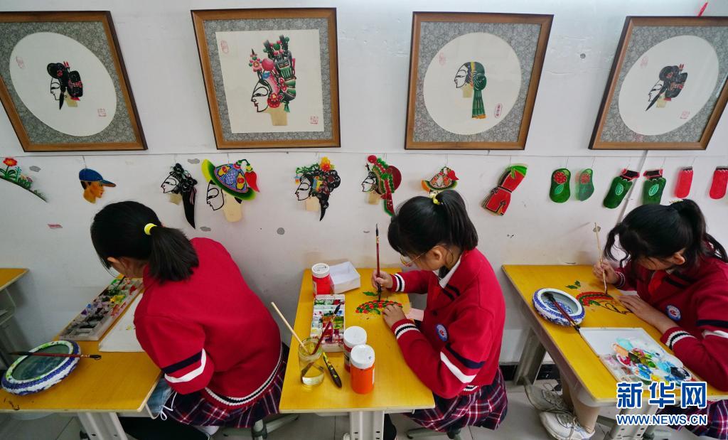 5月8日,河北省滦州市中山实验学校学生在制作皮影。新华社记者 牟宇 摄