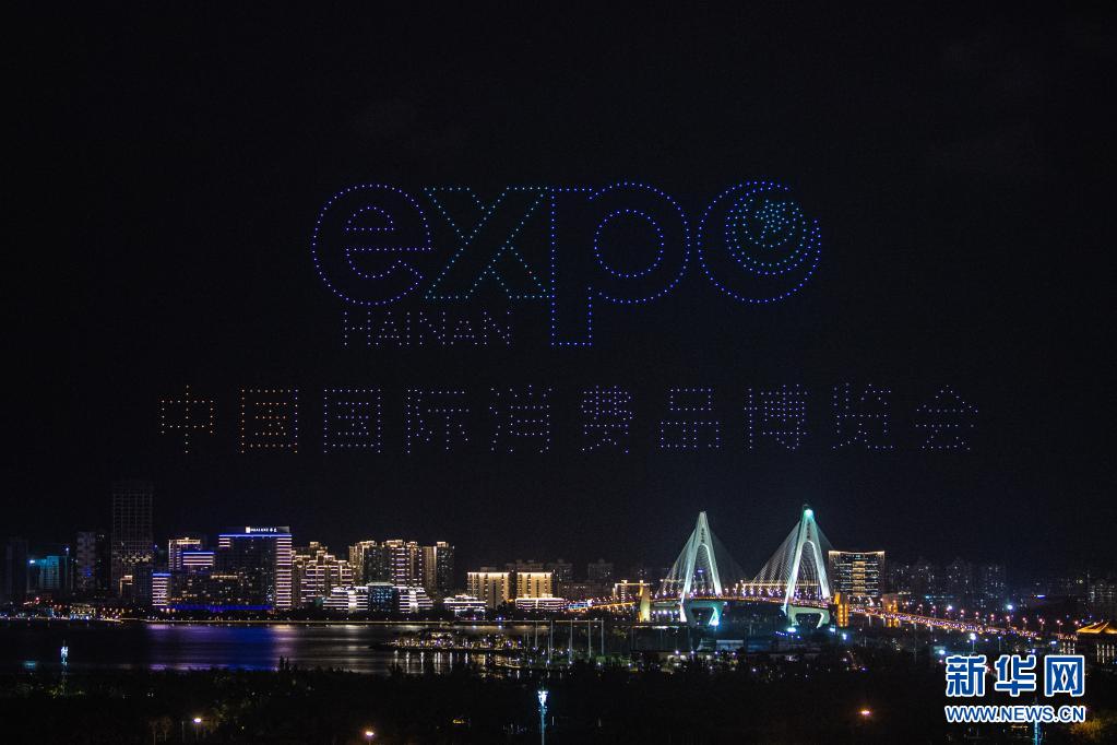首届中国国际消费品博览会于5月7日至10日在位于海口的海南国际会展中心举办。5月6日晚,海口市上演无人机表演秀,迎接首届消博会的举办。
