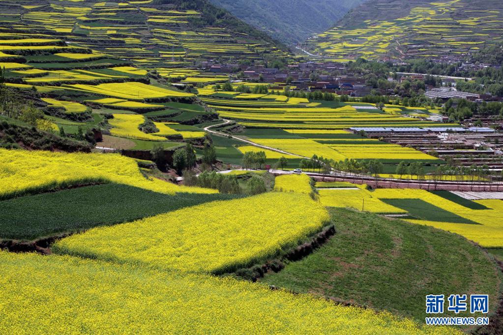 这是5月8日在甘肃省天水市武山县境内拍摄的油菜花田。
