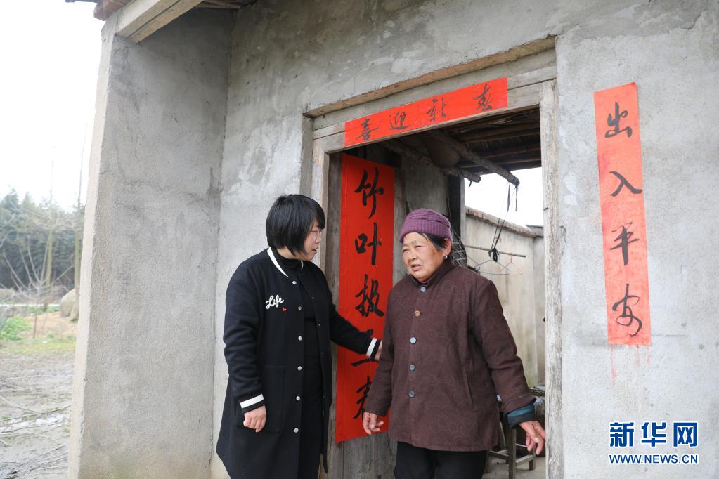 赵德莉(左)在走访农户(3月20日摄)。新华社记者 曹力 摄
