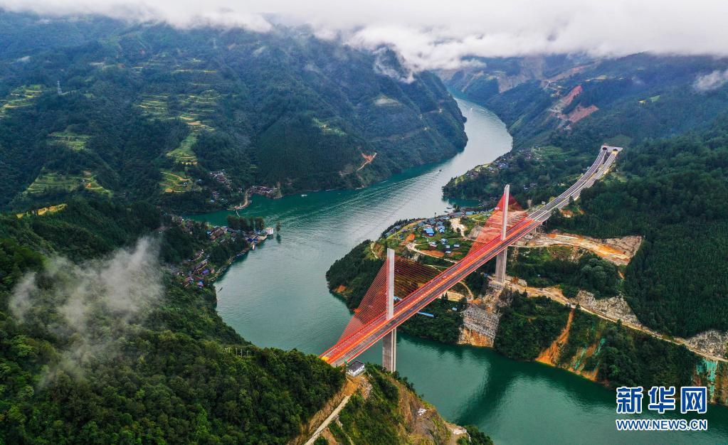 贵州剑榕高速清水江特大桥(2020年10月1日摄,无人机照片)。新华社记者 杨文斌 摄