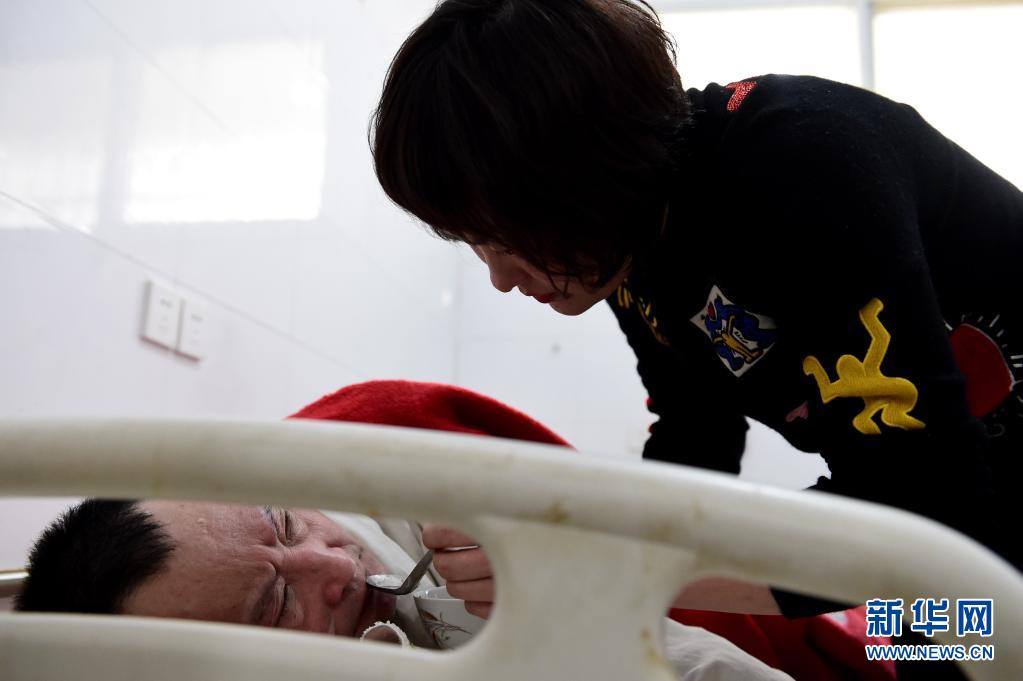 5月7日,许长琴的女儿张秋露给许金义喂午饭。