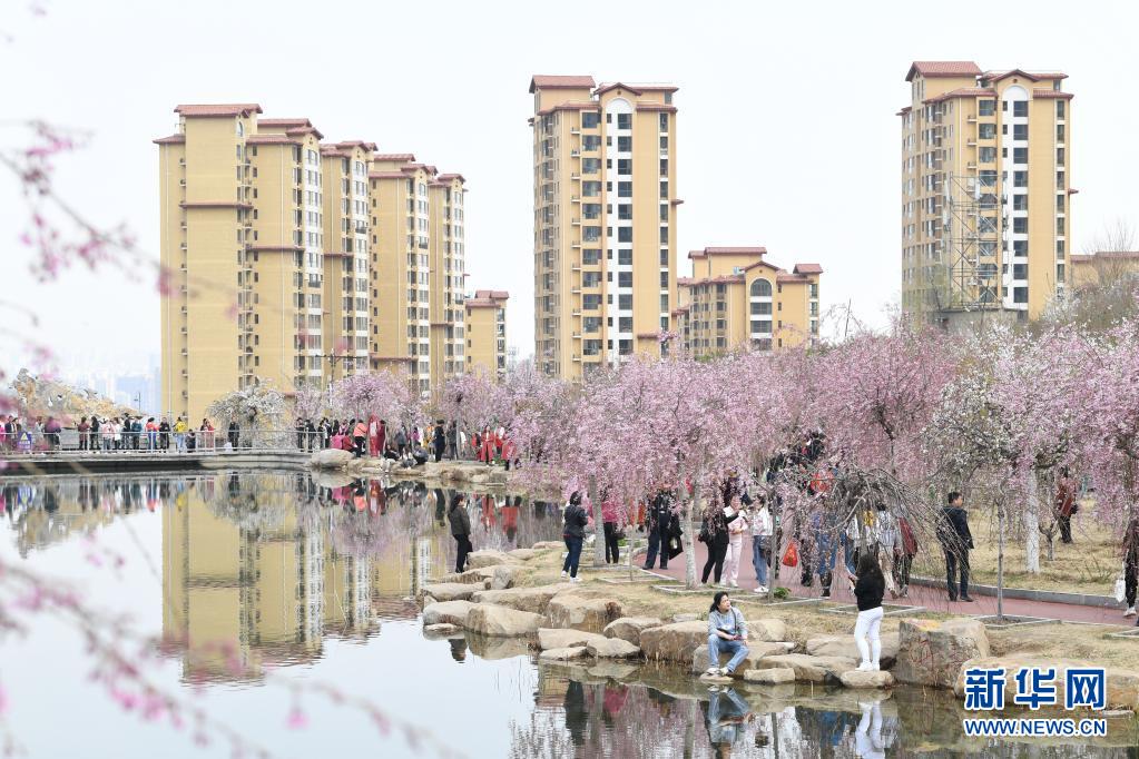 游人在太原市玉泉山城郊森林公园参观(2021年4月7日摄)。 新华社记者 杨晨光 摄