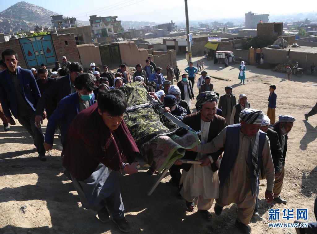 5月9日,在阿富汗喀布尔,亲属搬运爆炸遇难者的遗体。