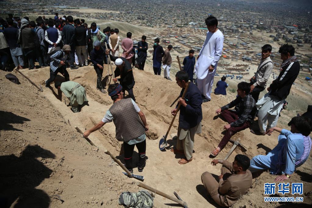 5月9日,在阿富汗喀布尔,人们准备埋葬遇难者。