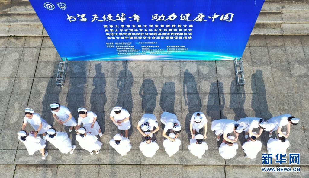 当日,湖南省衡阳市南华大学2021届护理学院毕业生“授帽”宣誓仪式在南华大学广场举行,共有198名护理专业的应届毕业生接受“授帽”,并参加宣誓活动,以此迎接即将到来的5·12国际护士节。“授帽”仪式结束后,南华大学还举办了急救技能比赛,以促进急救知识和技能的推广普及。