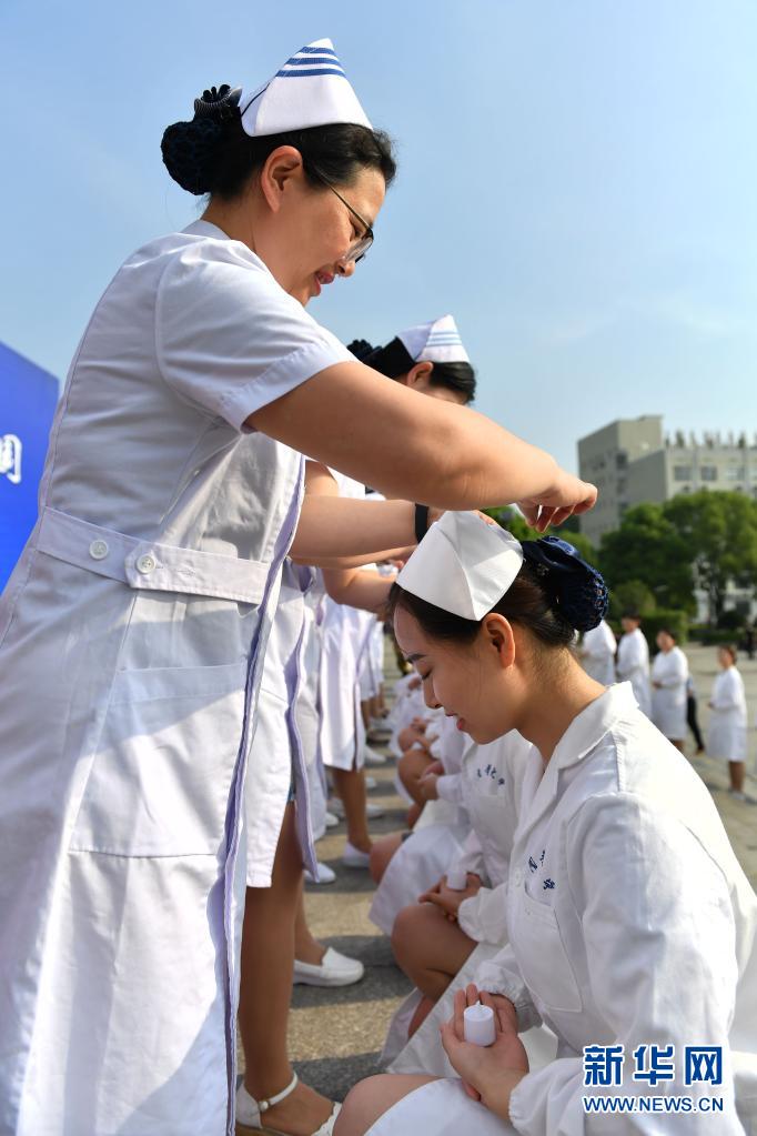 5月9日,南华大学护理专业的老师为毕业生“授帽”。