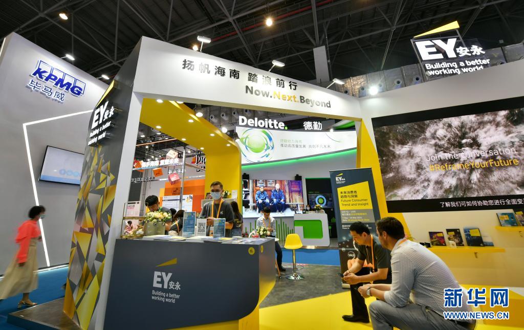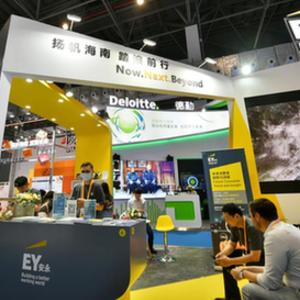 这是5月9日拍摄的消博会上的安永(中国)企业咨询有限公司展台。