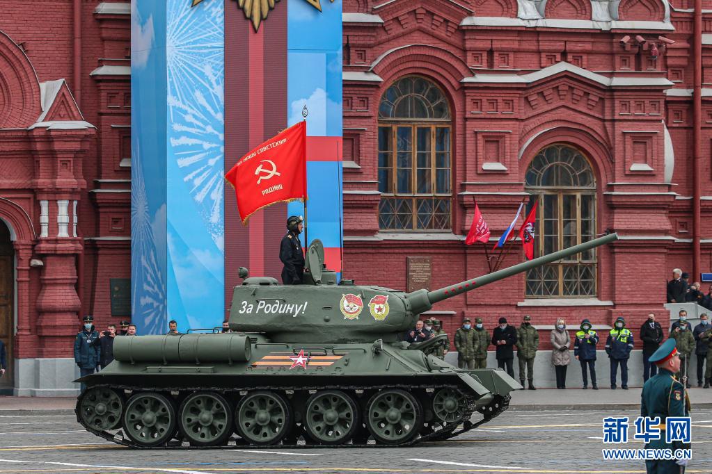 5月9日,在俄罗斯莫斯科举行的胜利日阅兵式上,T-34型坦克驶过红场。